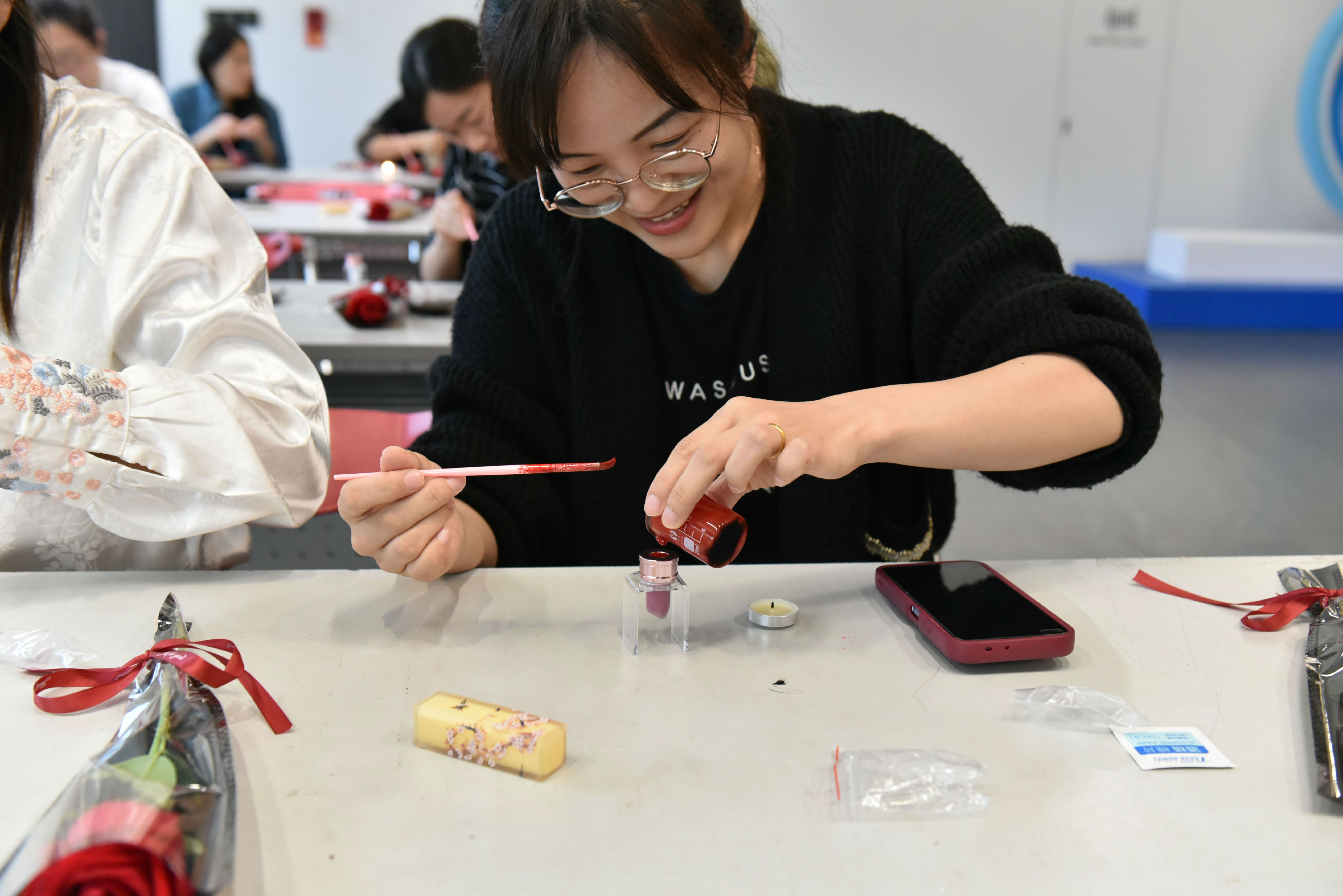 将制作好的口红装入细腻的礼盒里,,,,,,,每一份礼物都是一个小小的惊喜,,,,,,,期待被开启,,,,,,,转达温暖与爱意,,,,,,,成为母亲节最奇异的遮掩。。。。。。让爱随着口红靓丽的色彩,,,,,,,跳跃在母亲唇间,,,,,,,成为她们一样平常的亲密陪同。。。。。。